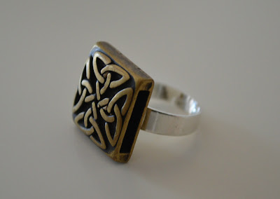 Como me gusto mucho este accesorio, le pedí a mi hermana que me trajese otro, y hice este anillo a juego. Solo necesitas una pieza celta, una min pistola de silicona caliente y una base de anillo. Pones un poco de silicona sobre la base y pegas el accesorio.