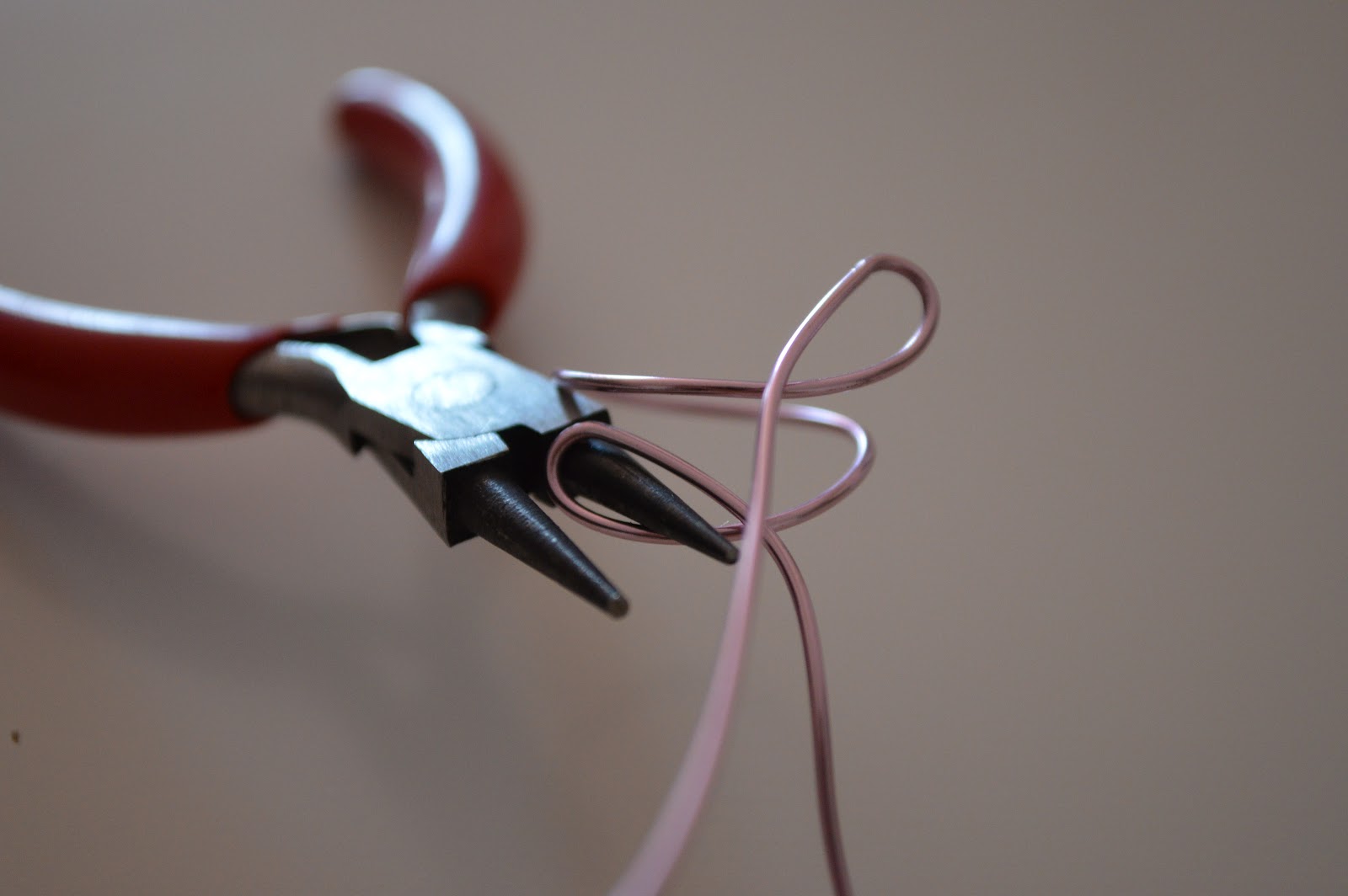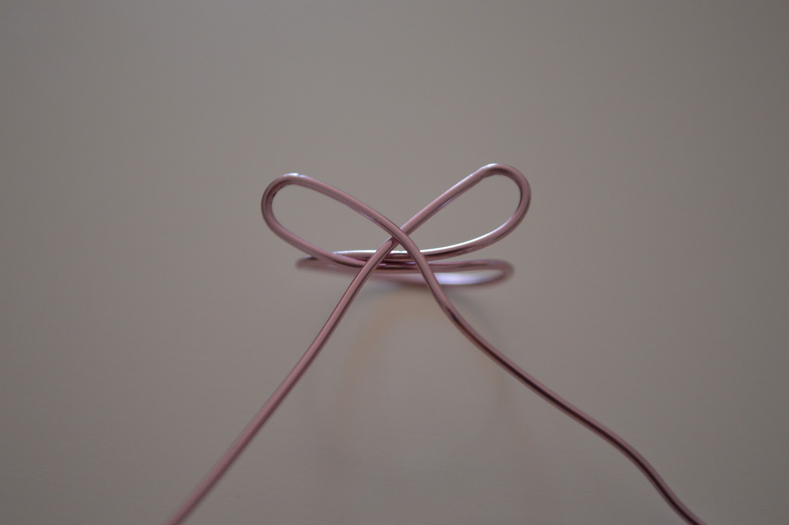 Después agarras el alambre inferior, haces lo mismo que en la parte de la derecha para crear el segundo bucle. Tienes que ajustar la forma del lazo.